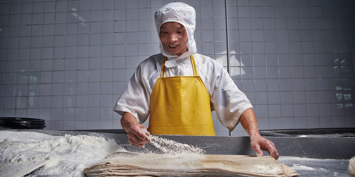 Dried tube hog casings are mainly used for dry or semi-dry sausages, and may also be used for cooked deli products. To produce dried tubed hog casings, pieces of hog casings are cut open and laminated on a customised sausage shaped mould.